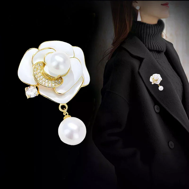 Elegant White Camellia Flower Brooches Pins For Women Beautiful Flower Plant Dressing Clothes Corsage Jewelry Accessories