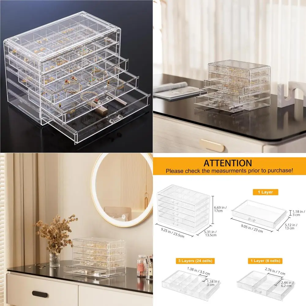 Clear Acrylic Earring Organizer Box, Large Transparent Jewelry Storage with Stackable Drawers for Earrings Display