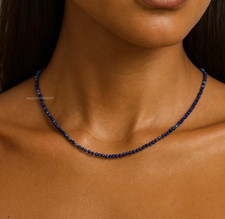 This delicate lapis lazuli choker showcases 2-4mm natural stone beads in deep, velvety blue—their rich hue untouched by pyrite, a rare find in lapis gems. 💙 A Swath of Pure Azure at Your Collarbone.