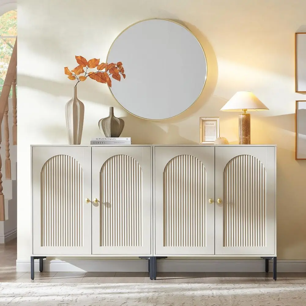61.75 Wide Arched Top Storage Cabinet with Adjustable Shelves for Bathroom, Kitchen, Living Room, Entryway in Cream