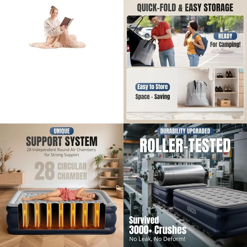 Quick-Inflatable 18 Air Mattress with Waterproof Fabric and Built-in Pump for Home, Outdoor, and Guests