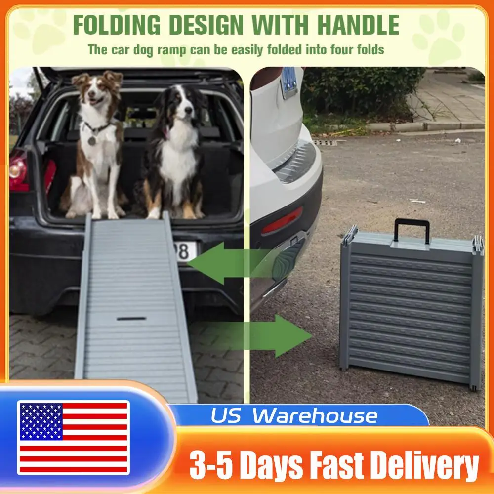 Folding Dog Ramp Non-Slip Rug Surface Dog SUV & Truck Ramp 59x15.8 Inch Pet Ramp Stairs for Medium & Large Dogs Get Into A Car