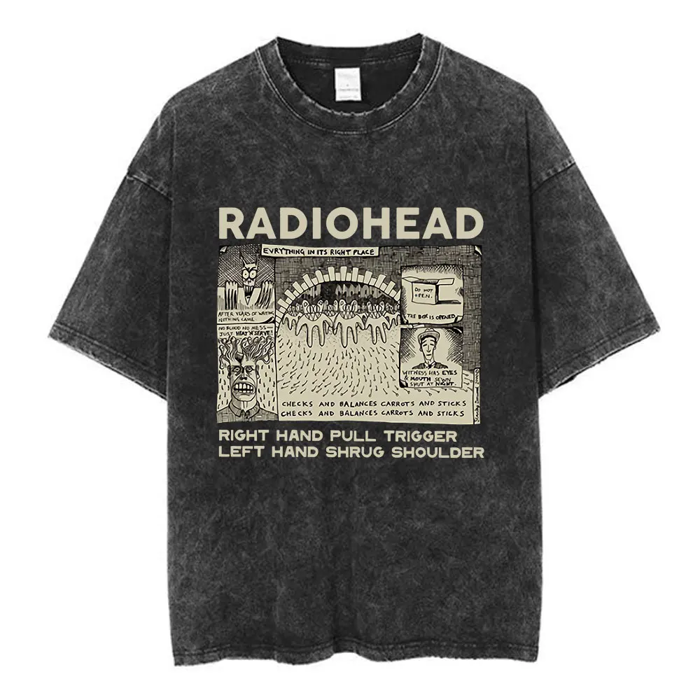 Rock Band Radiohead The Bends Vintage Washed T-shirt Men Women Fashion Hip Hop T Shirts 100_ Cotton Casual T shirts Streetwear