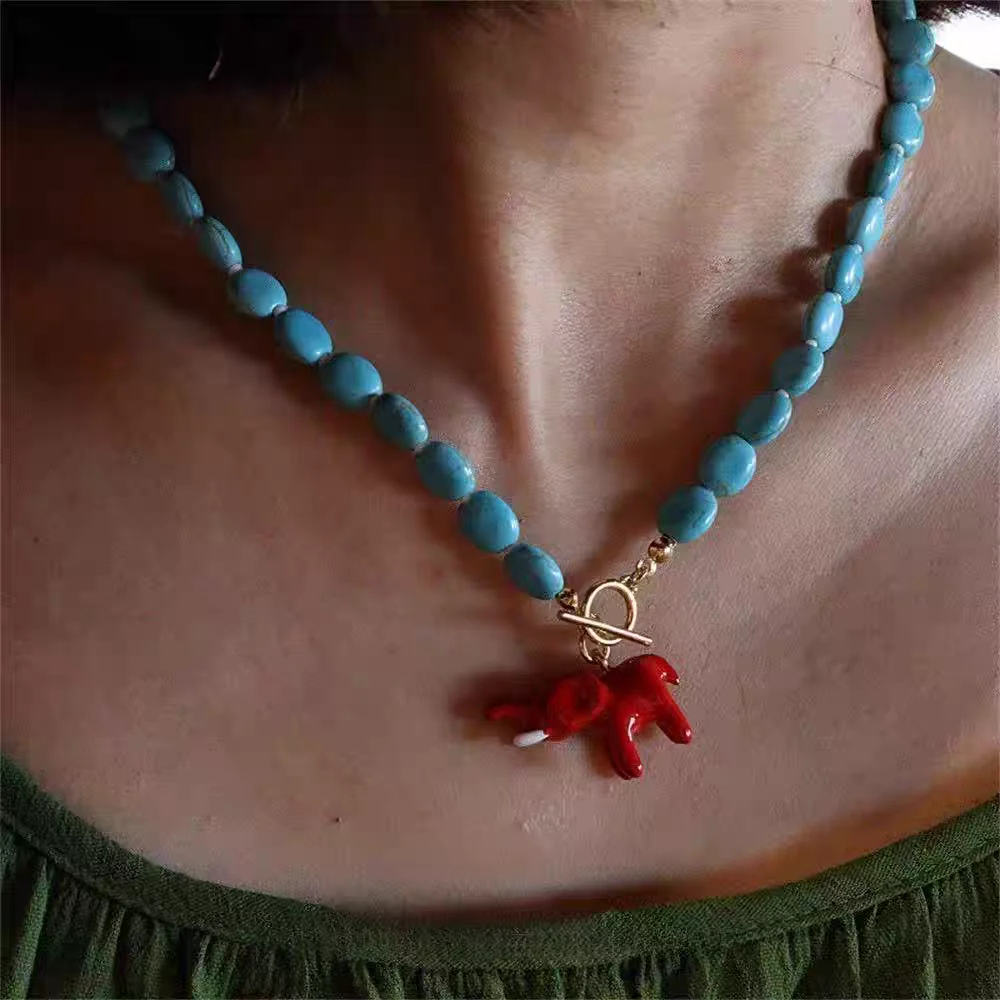 Blue stone red enamel elephant necklaces for women cute funny necklaces vintage summer holiday jewelry