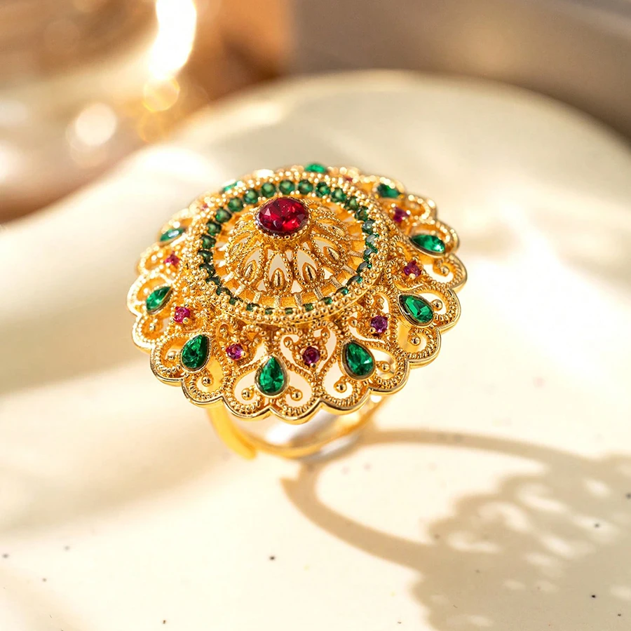 1PC Adjustable Three-Dimensional Flower Ring Gold Plated Copper Women's Ring Middle Eastern Arabian Style for Bridesmaid Or Wedd